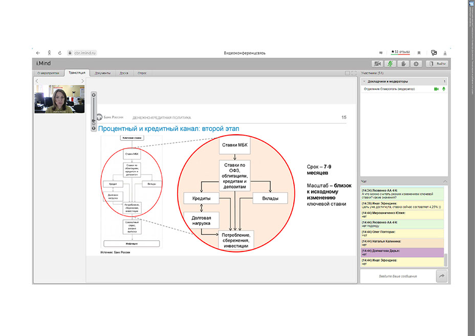 Встречи проводились в форме вебинаров, которые информировали студенческую аудиторию о проблемах формирования и реализации денежно-кредитной политики Российской Федерации.