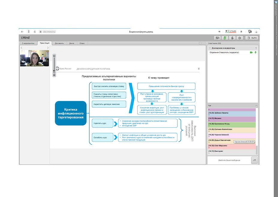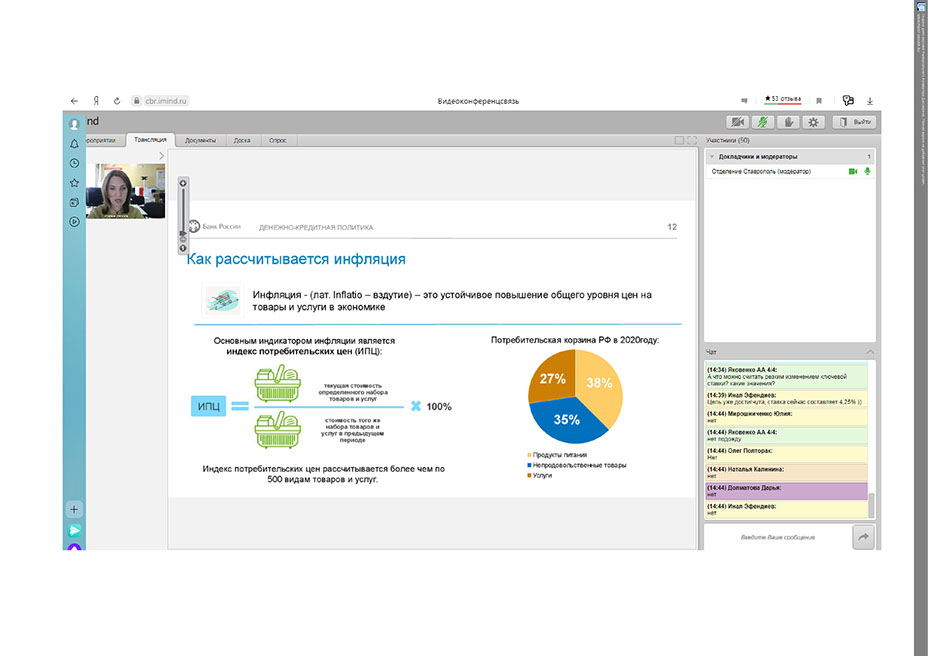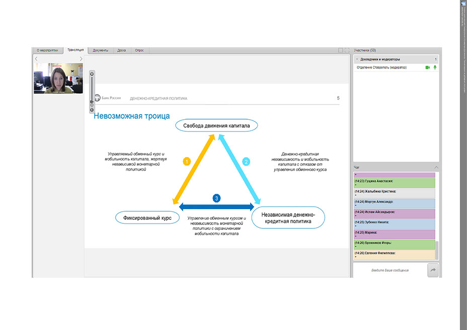 Встречи проводились в форме вебинаров, которые информировали студенческую аудиторию о проблемах формирования и реализации денежно-кредитной политики Российской Федерации.